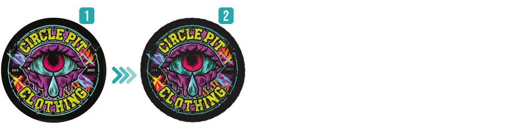 Für kleine Änderungen (oder wenn die Datei bereits korrekt ist) greift unser Labor direkt ein, ohne zusätzliche Kosten. Sobald Sie Ihre Datei (1) hochgeladen haben, erhalten Sie ein Foto-Muster Ihrer Patch (2) zur Freigabe, bevor die Produktion (3) startet.